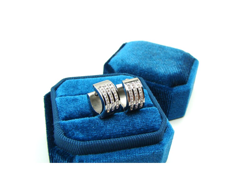 Krásné náušnice z chirurgické oceli zdobený bílými kamínky - viz foto.