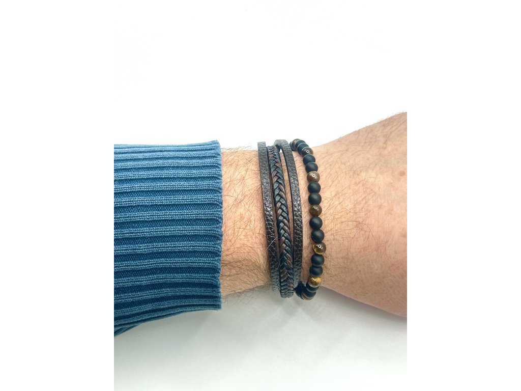 Materiál - kůže, chirurgická ocel. Materiál - chirurgická ocel - hypoalergenní (mohou ho nosit i lidé s alergií na bižuterii nebo stříbro). Náramek je vytvořen z materiálu, který je známý pro svou odolnost. Náramek z chirurgické oceli je hypoalergenní, tzn., že nevyvolává žádné alergické reakce. Náramek – chirurgická ocel je barevně stálá a nemění svoji barvu a je vysoce odolná vůči otěru a poškrábání. Šperk je vhodný na denní nošení. Náramek bez vsazených kamínků a jiných atributů náročnějších na péči a údržbu, je klasikou vhodnou pro každodenní nošení včetně kontaktu s vodou.