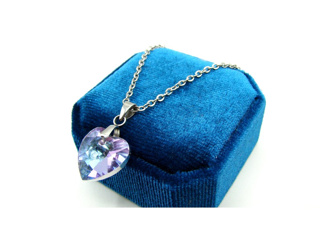 Náhrdelník SRDCE MODROFIALOVÉ z Chirurgické oceli NH250217 dárkové balení zdarma