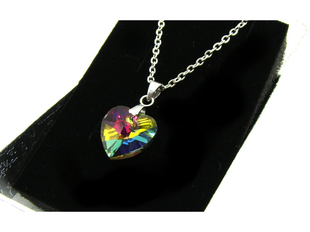 Krásný řetízek s přívěskem z chirurgické oceli ve tvaru srdce - barevné - viz foto.