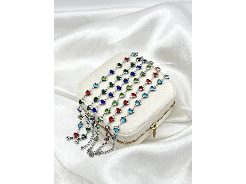 Krásný jemný náramek barevné srdce z chirurgické oceli NR250227