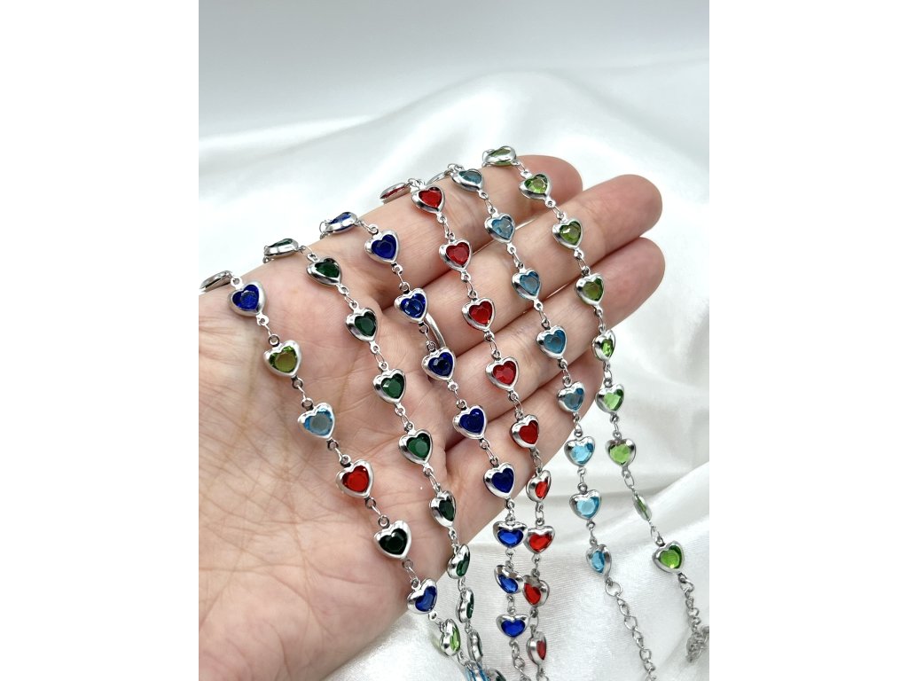 Krásný náramek z chirurgické oceli - barevné srdíčka - viz foto.