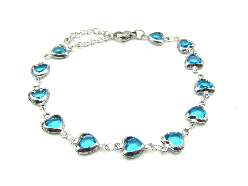 Krásný náramek z chirurgické oceli - modré srdíčka - viz foto.
