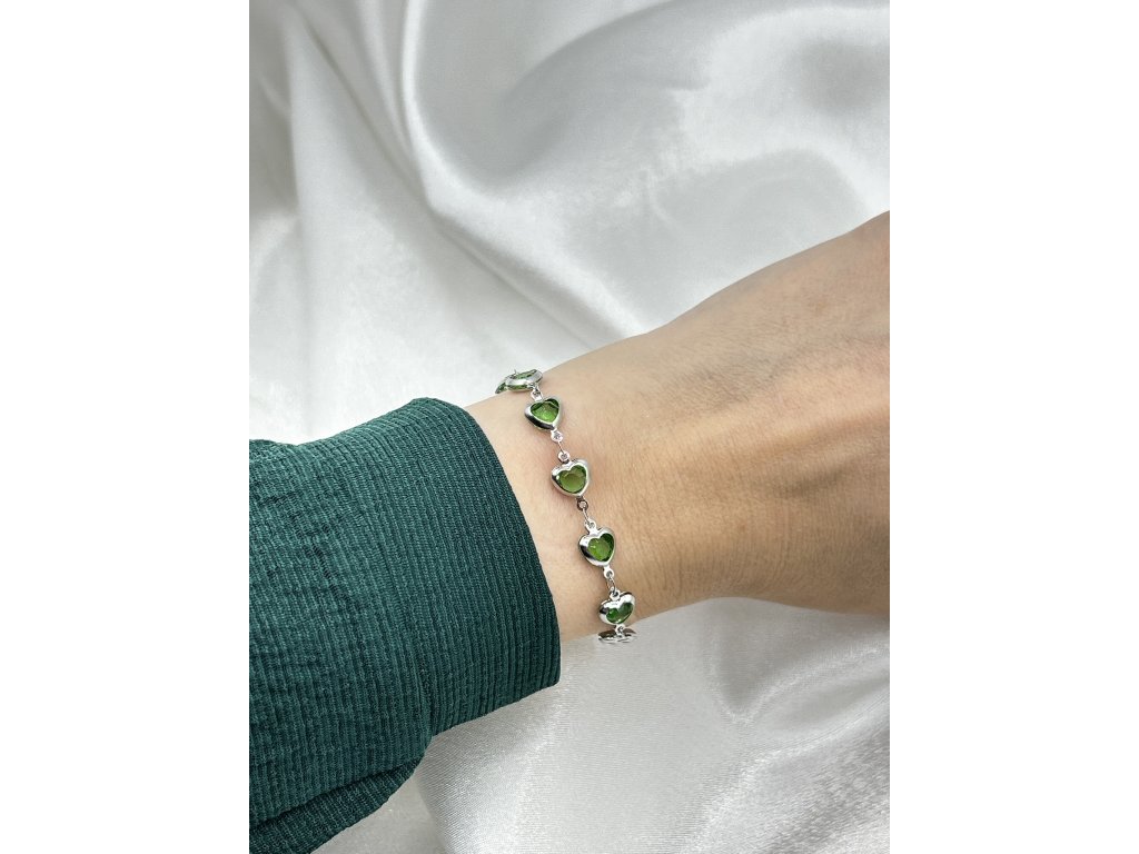 Krásný náramek z chirurgické oceli - zelené srdíčka - viz foto.