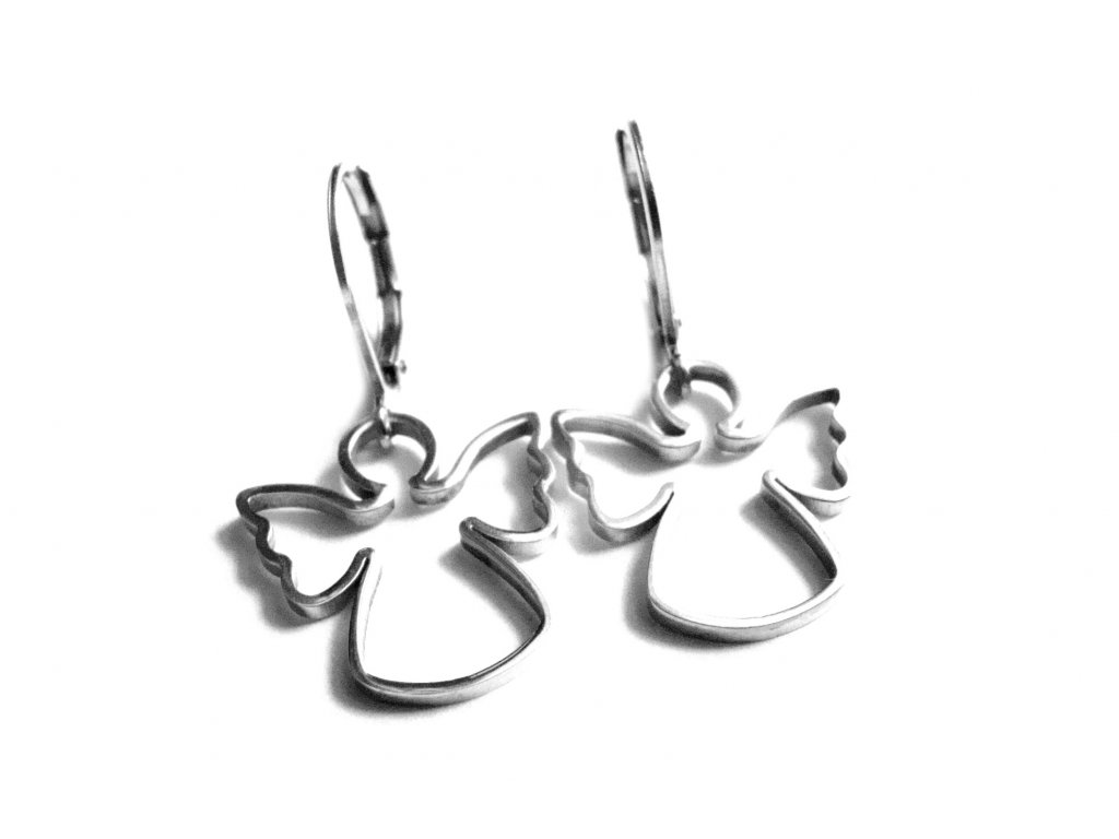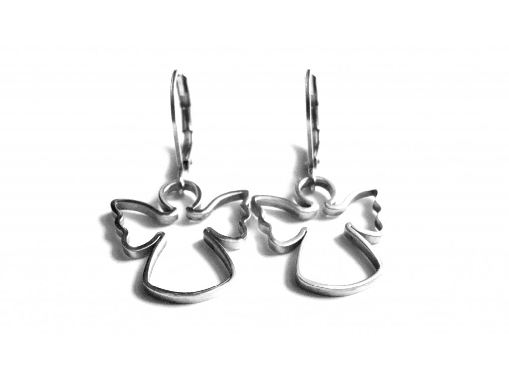 Krásné náušnice z chirurgické oceli - anděl - o průměru cca 17 mm. Délka včetně závěsu cca 28 mm