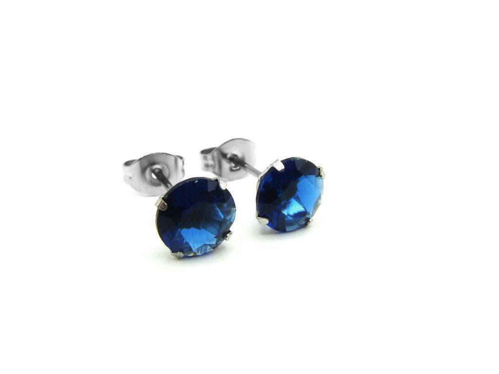 Náušnice z Chirurgické oceli s kamínkem 0,7 cm tmavě modré NS260109 dárkové balení zdarma