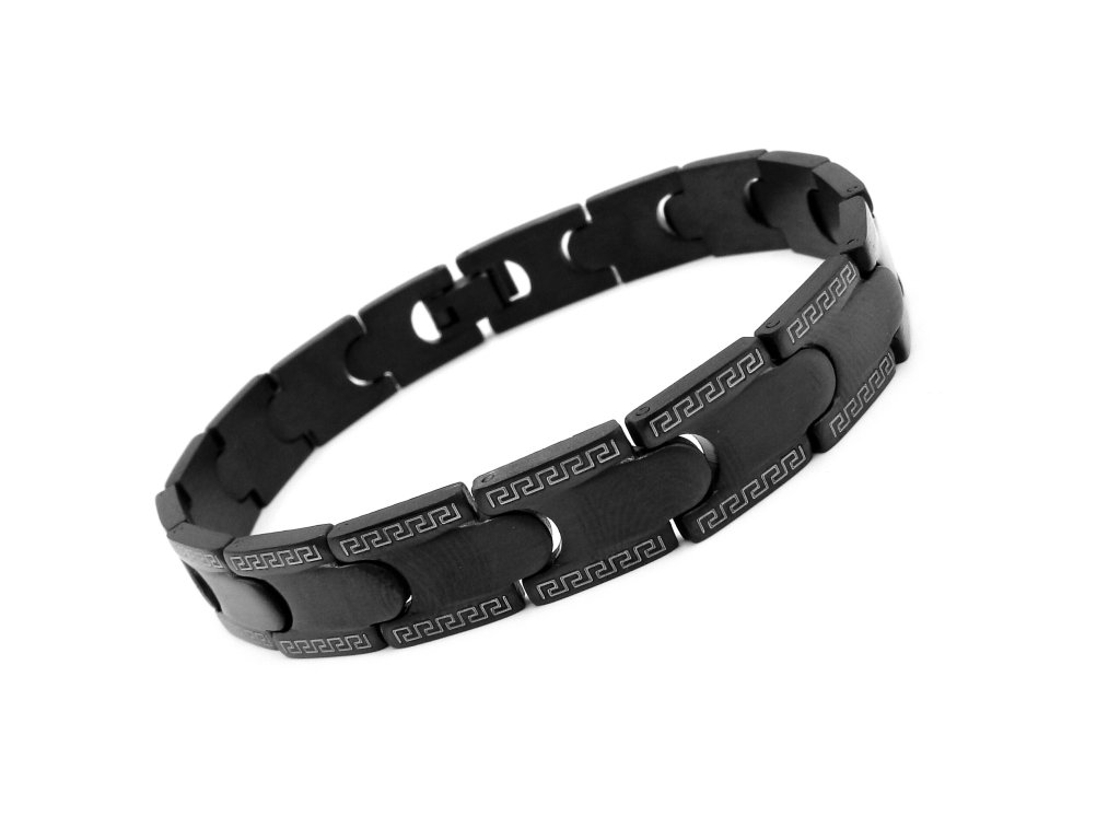 Krásný černý pánský náramek z chirurgické oceli - viz foto.