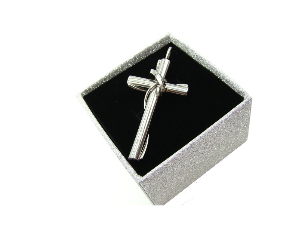 Krásný přívěsek z chirurgické oceli ve tvaru kříže s kroužkem - viz foto.