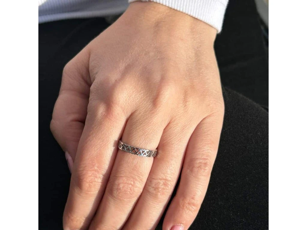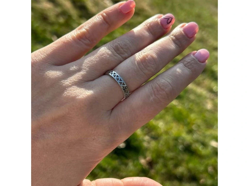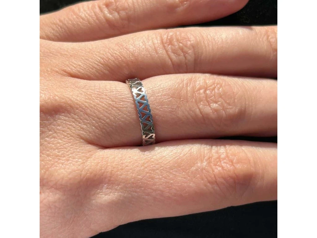 Krásný dámský prsten - srdíčka z chirurgické oceli - viz foto. Barva - stříbrná.