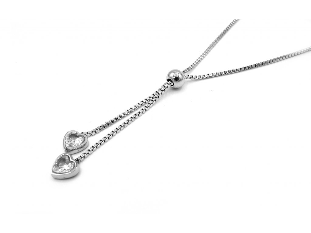 Délka náhrdelníku nastavitelná - cca 40 - 45 cm, uprostřed kulička se dvěma řetízky a srdíčky na konci - viz foto
