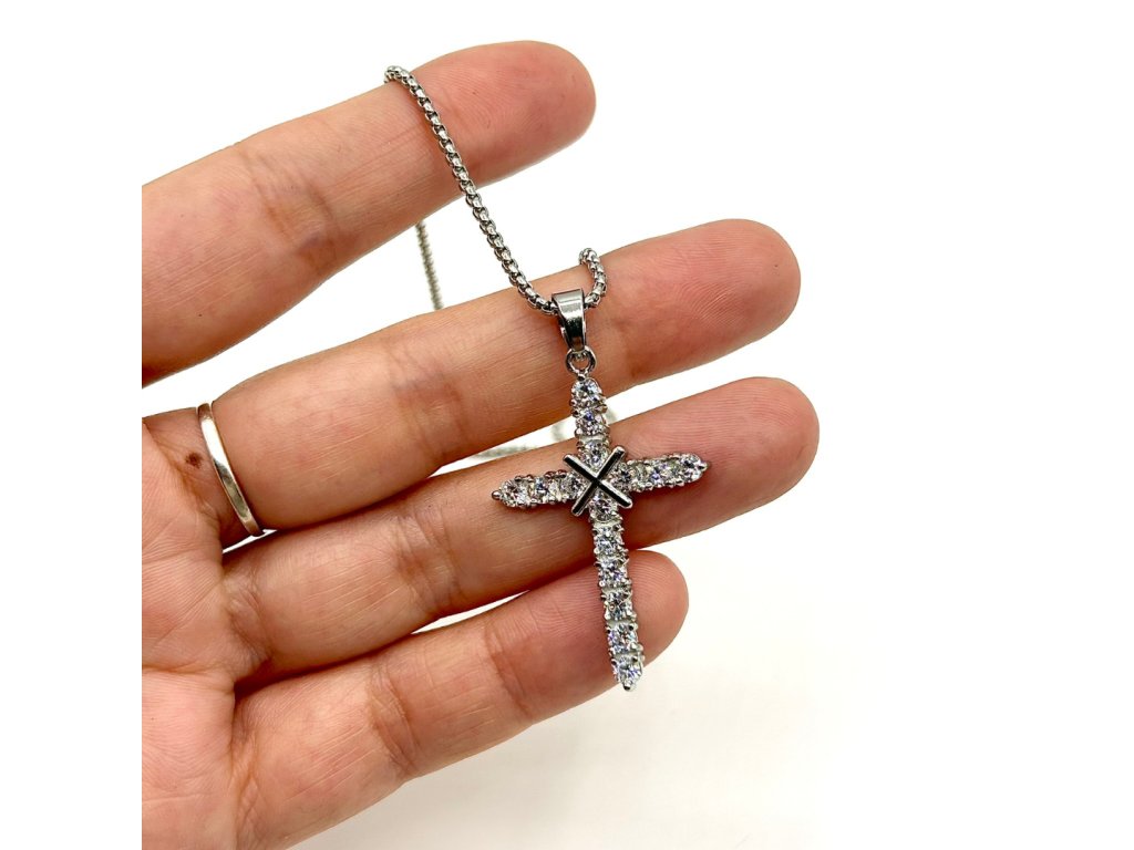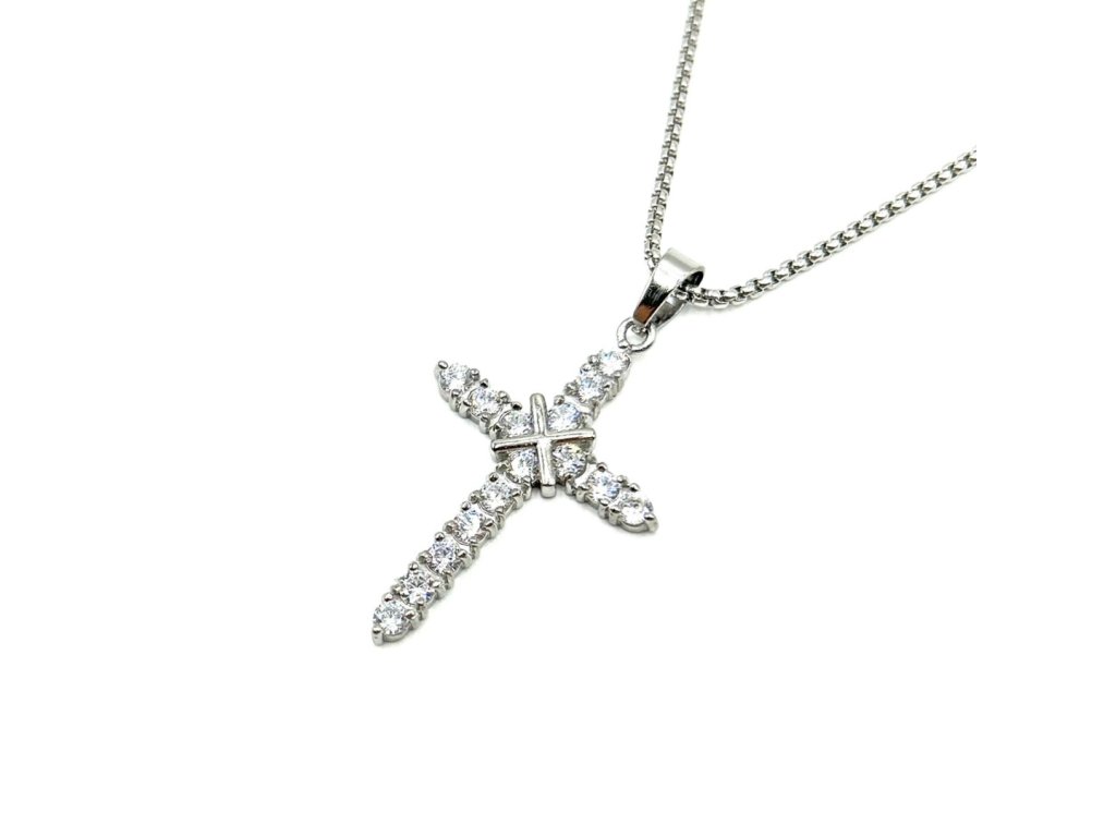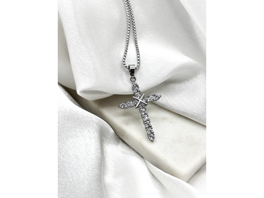 Dámský náhrdelník křížek s krystalky z chirurgické oceli NH180301