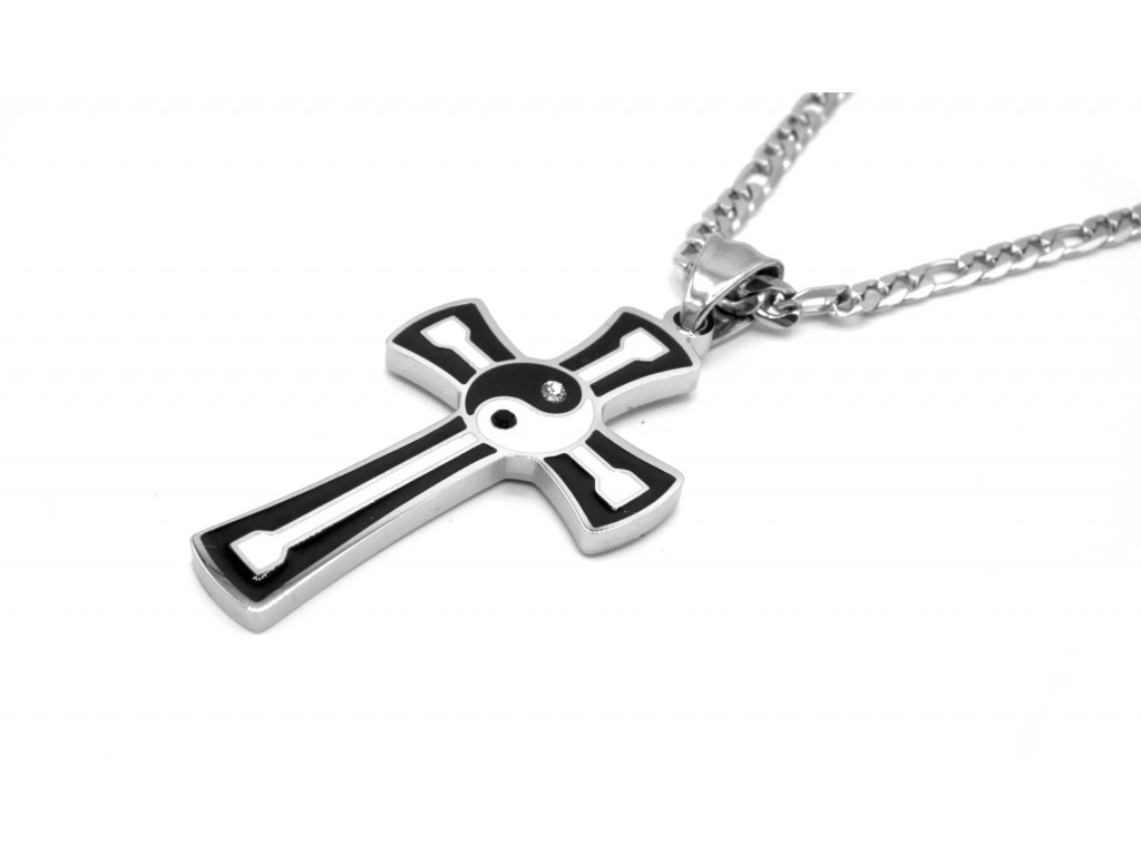 řetízek a přívěsek - chirurgická ocel - kříž - jing jang - 090451 dárkové balení zdarma