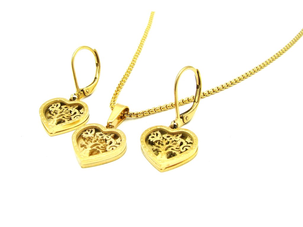 Souprava Náušnice a Náhrdelník SRDCE STROM ŽIVOTA GOLD Chirurgická ocel SET241272 dárkové balení zdarma