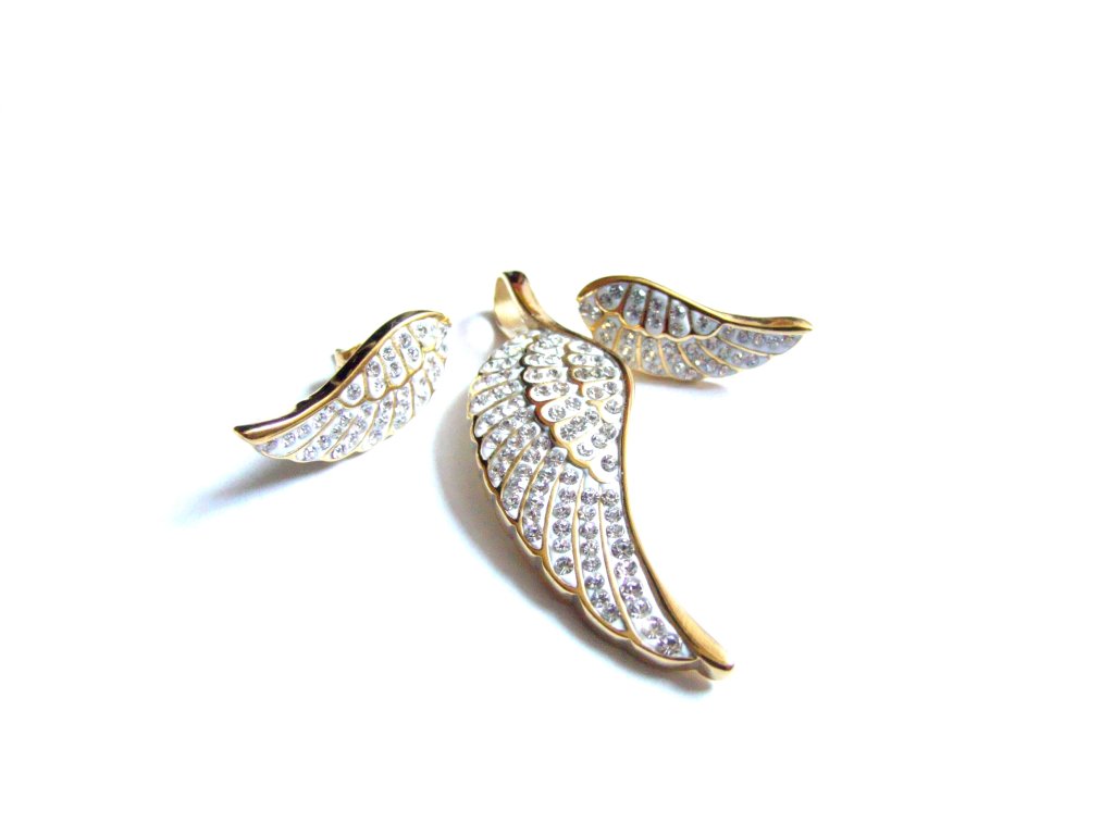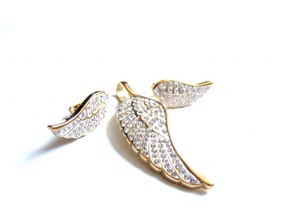 souprava - náušnice a přívěsek - chirurgická ocel - andělská křídla - 090452 dárkové balení zdarma