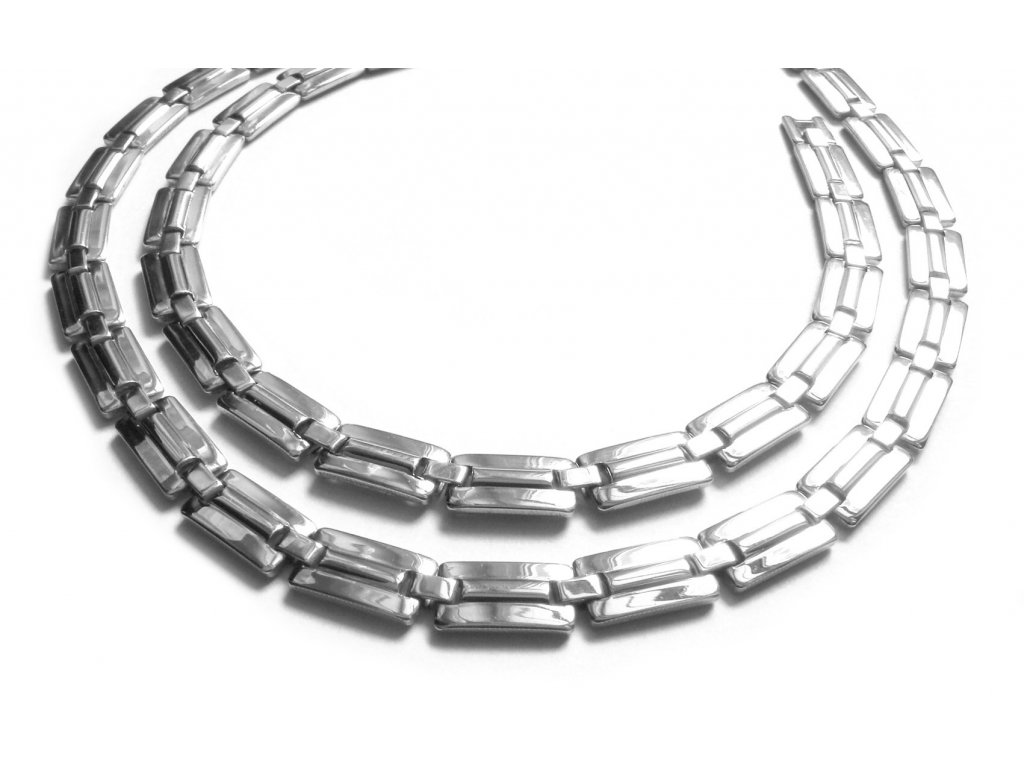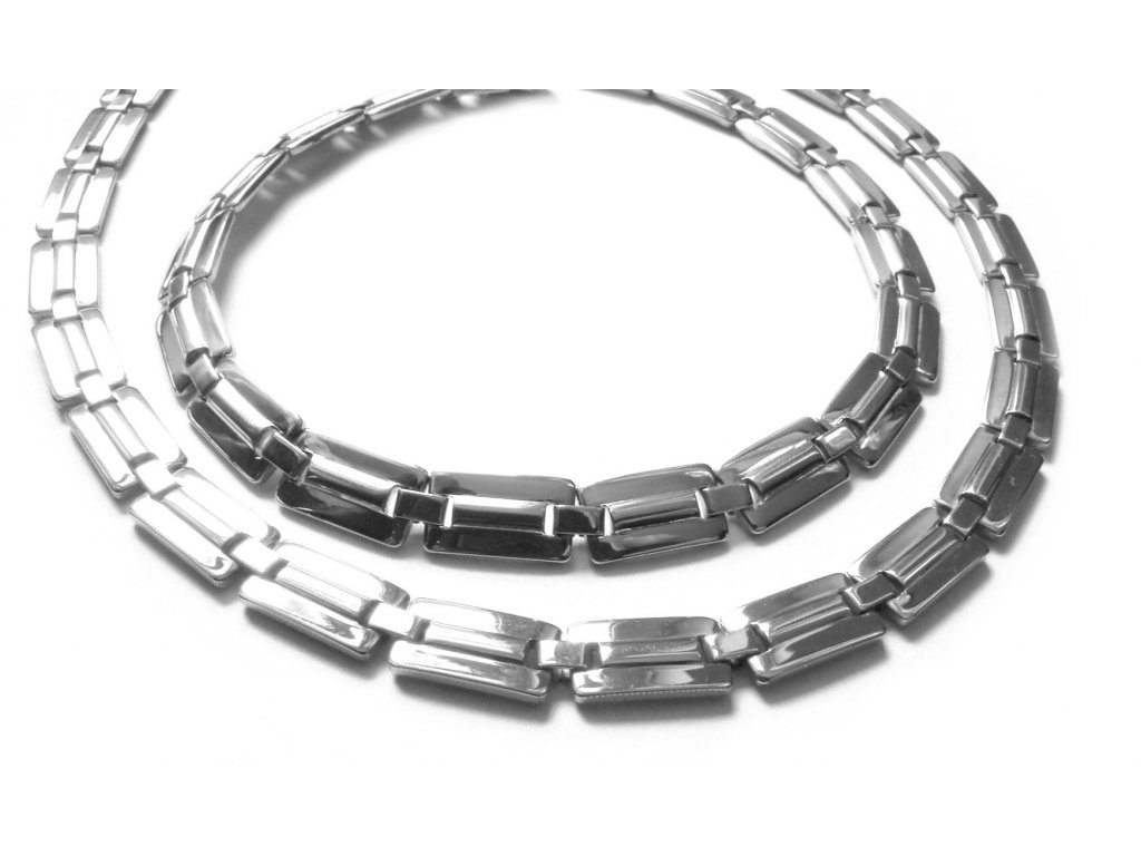 Nádherný řetízek (náhrdelník) a náramek z chirurgické oceli, Viz foto. Délka řetízku cca 50 cm, šířka cca 6 mm, délka náramku cca 20 cm a šíře 6 mm.