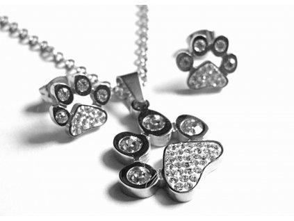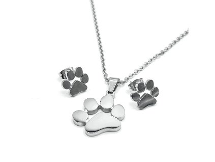 souprava - řetízek, přívěsek a náušnice - tlapka - chirurgická ocel - 130113 dárkové balaní zdarma