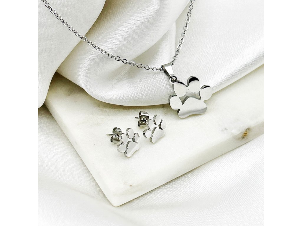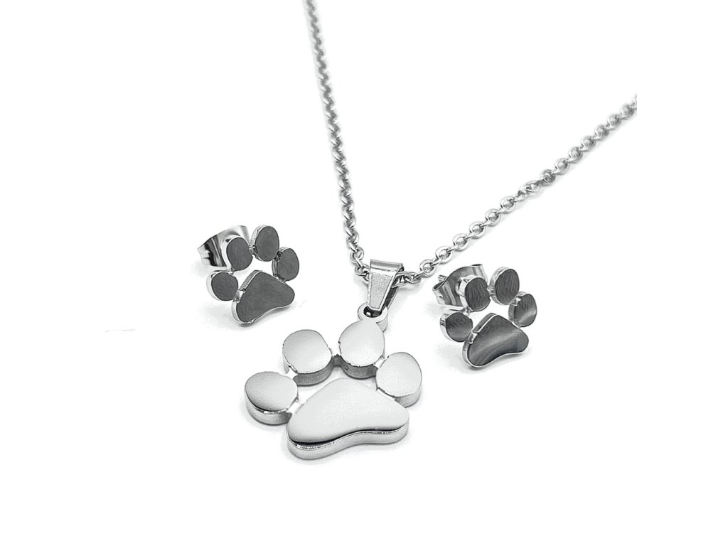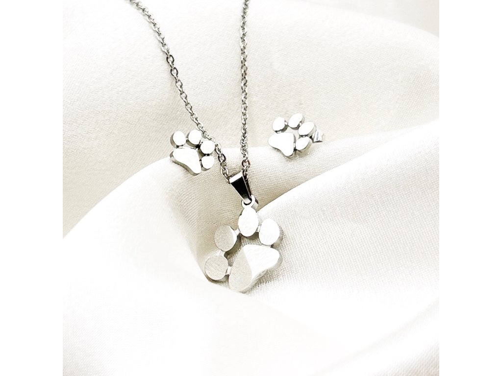 souprava - řetízek a náušnice - tlapky - chirurgická ocel - dámský - 160110 dárkové balení zdarma
